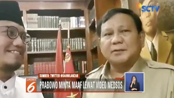 Tak lama, melalui video unggahan Dahnil Simanjuntak di media sosial, Ketua Umum Partai Gerindra ini menyatakan minta maaf dan tak pernah berniat menghina.