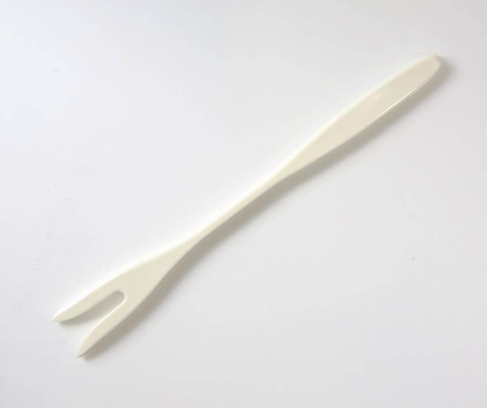 このフォークは先端が「二股」に分かれているのが特徴。樹脂で作られていて、長さはおよそ18センチ。軽い力で一口サイズが巻けて、とても食べやすいとのこと。