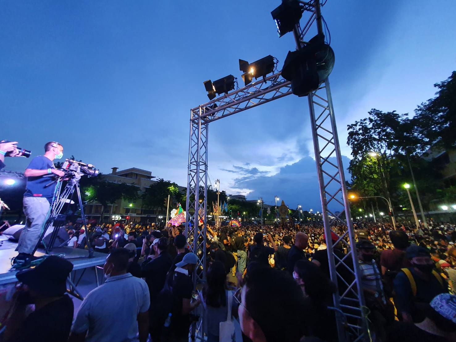 ขณะที่นายอานนท์ นำภา กล่าวว่า เห็นผู้ชุมนุมมาเข้าร่วมจำนวนมาก ถือเป็นกำลังใจที่ดีเพราะแสดงว่าคนเริ่มเข้าใจจุดยืนที่ออกมาเรียกร้องของกลุ่ม การมาร่มเวทีปราศรัยในวันนี้ไม่เกรงว่าจะผิดเงื่อนไขการประกันตัว เพราะเงื่อนไขห้ามชุมนุมโดยไม่สงบยุยงปลุกปั่นให้เกิดความวุ่นวาย แต่เชื่อว่าการชุมนุมในวันนี้เป็นไปอย่างสงบ