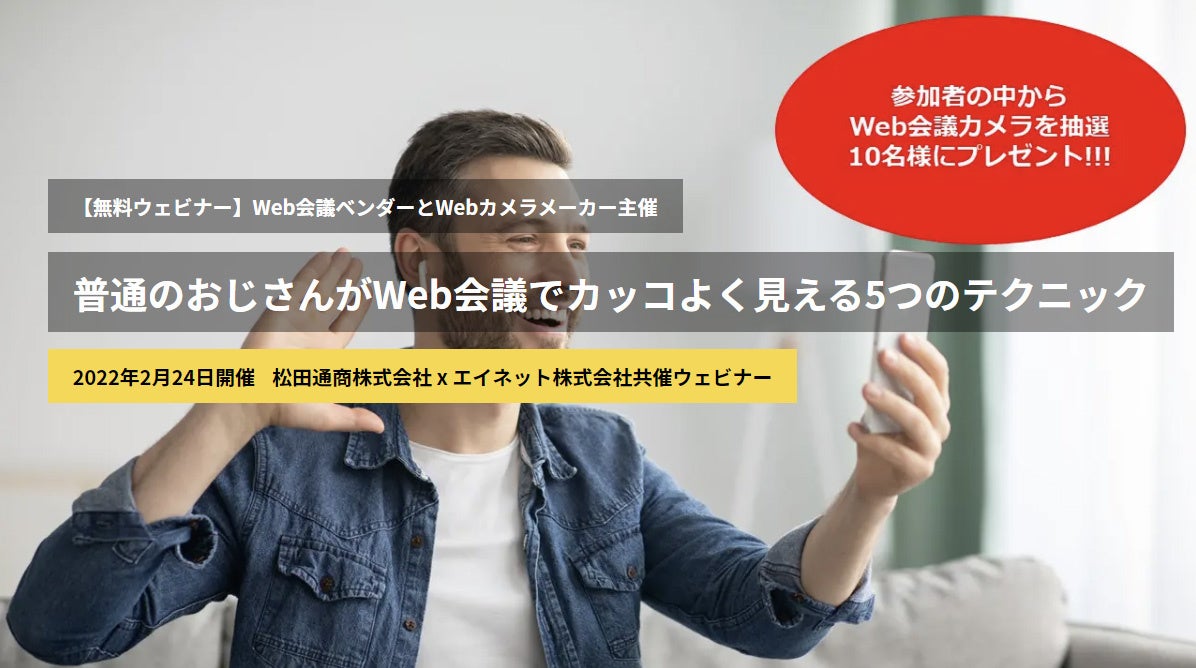 エイネット株式会社と松田通商株式会社は専門家講師を招いて、化粧品などを使うのではなく、ちょっとした工夫でWeb会議の時に映える自分を演出する方法をご紹介するウェビナーを開催いたします。
